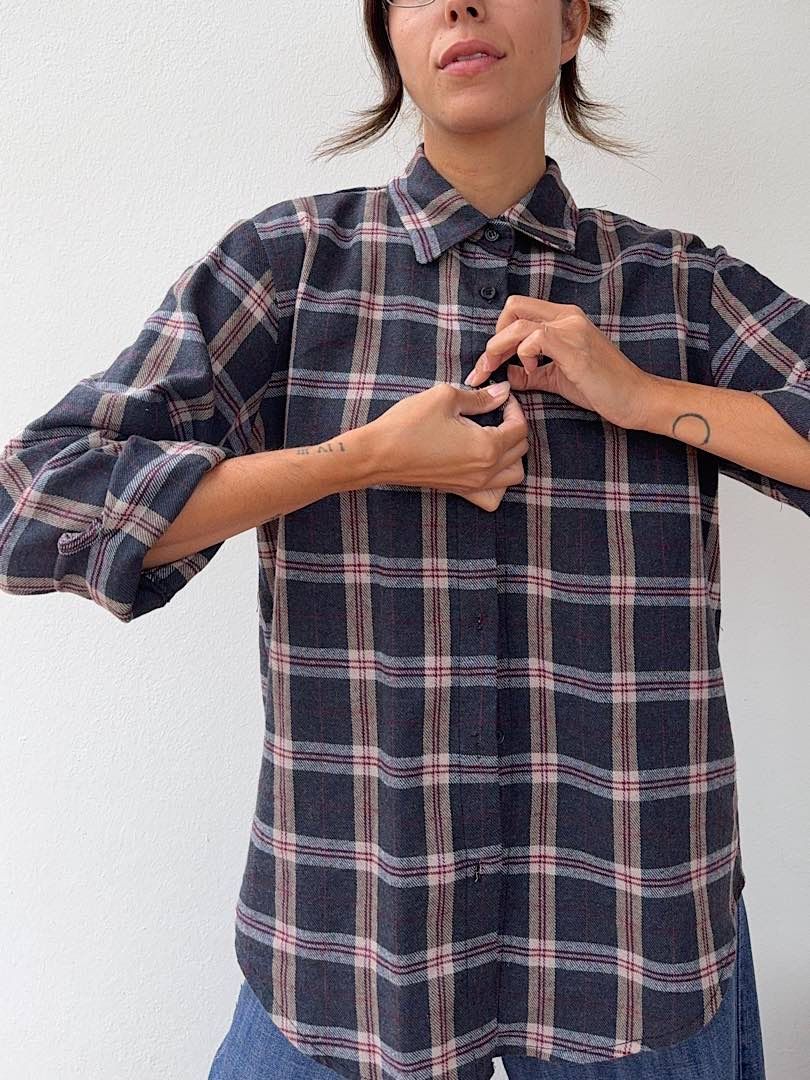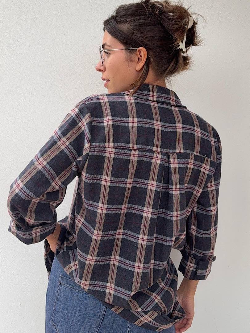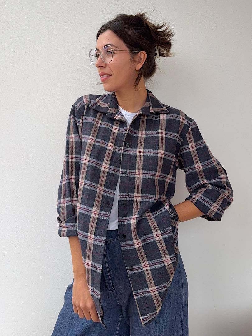 Camicia Flanella a quadri blu avio, beige e bordeaux,