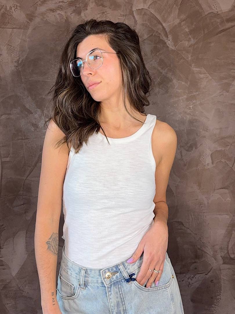 Top in cotone fiammato
