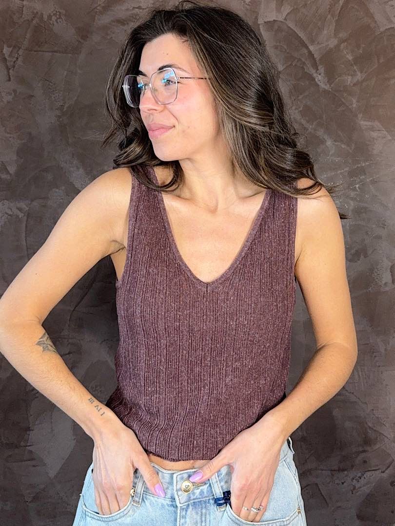 Top in filo di cotone a costine
